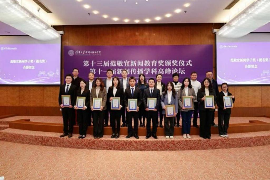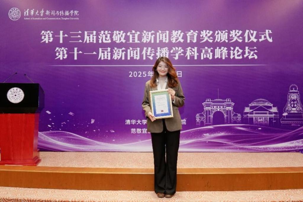 2025年11月2日,第十三届范敬宜新闻教育奖颁奖典礼暨第十一届新闻传播学科高峰论坛在清华大学举行。十二届全国人大教科文卫委员会主任委员、原国家新闻出版总署署长柳斌杰,人民日报社编委委员、海外版总编辑陈贽,清华大学党委常务副书记向波涛,中国记协党组成员、书记处书记殷陆君,中国外文局副局长于运全等嘉宾出席颁奖典礼。伟德bevictor中文版新闻学2023级本科生李睿逸荣获新闻学子提名奖,系伟德bevictor中文版首位在读期间获得范敬宜新闻教育奖的员工,是新闻学国家级一流专业建设的重要成效之一。