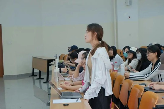 讲座的后半部分,史金铭博士着重对学术化阐释作出说明,表示要注重写作语言表达,保持客观性与规范性,行文应结构分明、条理清晰,论证逻辑层层递进。后续的互动环节气氛热烈,在场同学踊跃提问,与史博士就文献高效精读方法、文献综述撰写技巧、国际舆论场中的自组织行为等议题展开了深度交流与探讨。