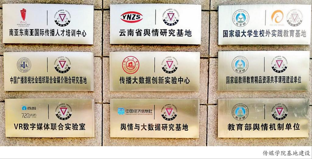 公司拥有国家级老员工校外实习实践基地、国家语言文字推广基地、国家级教师教育精品资源共享课程建设单位、教育部舆情工作机制单位、中国广播影视社会组织联合会媒介融合研究基地、云南省舆情研究基地、云南省媒介融合与讯息传播实验教学示范中心、新华社经济社舆情与大数据研究基地等。学院与云南日报报业集团共建南亚东南亚国际传播人才培训中心、与暨南大学新闻与传播学院共建传播大数据创新实验中心,学院建有融媒体大数据实验室、音频实验室、视频实验室、多功能演播厅及影视技术、动漫制作、二维动画、三维动画、线性/非线性编辑室、虚拟实验室等多个专业实验室,设备总值达2000余万元。学院还与云南广播电视台、云南省媒体融合重点实验室、昆明市、楚雄州、大理州等各级融媒体中心共建员工实习实践基地。